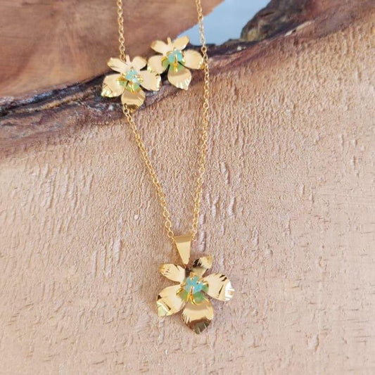 646 Set Collar + Topos Flores Muralla, Mariposa y flores Esmeralda
