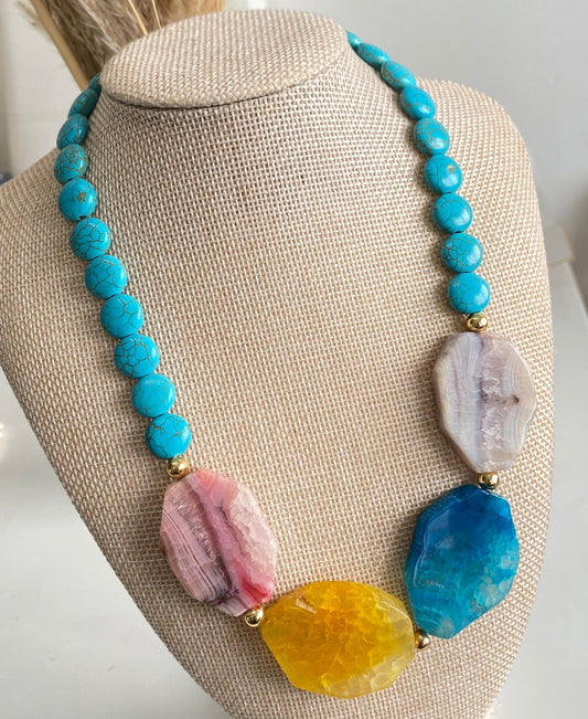 700 Collar 4 Estaciones | Piedras Turquesas & Piedras Maxi Agata naturales